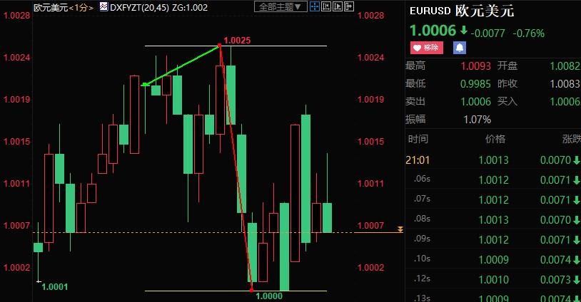 稍早前,欧洲央行公布新政,如期加息75个基点。决议公布至今,欧元累计波动逾50点,高点和低点分别为1.0036和0.9985。