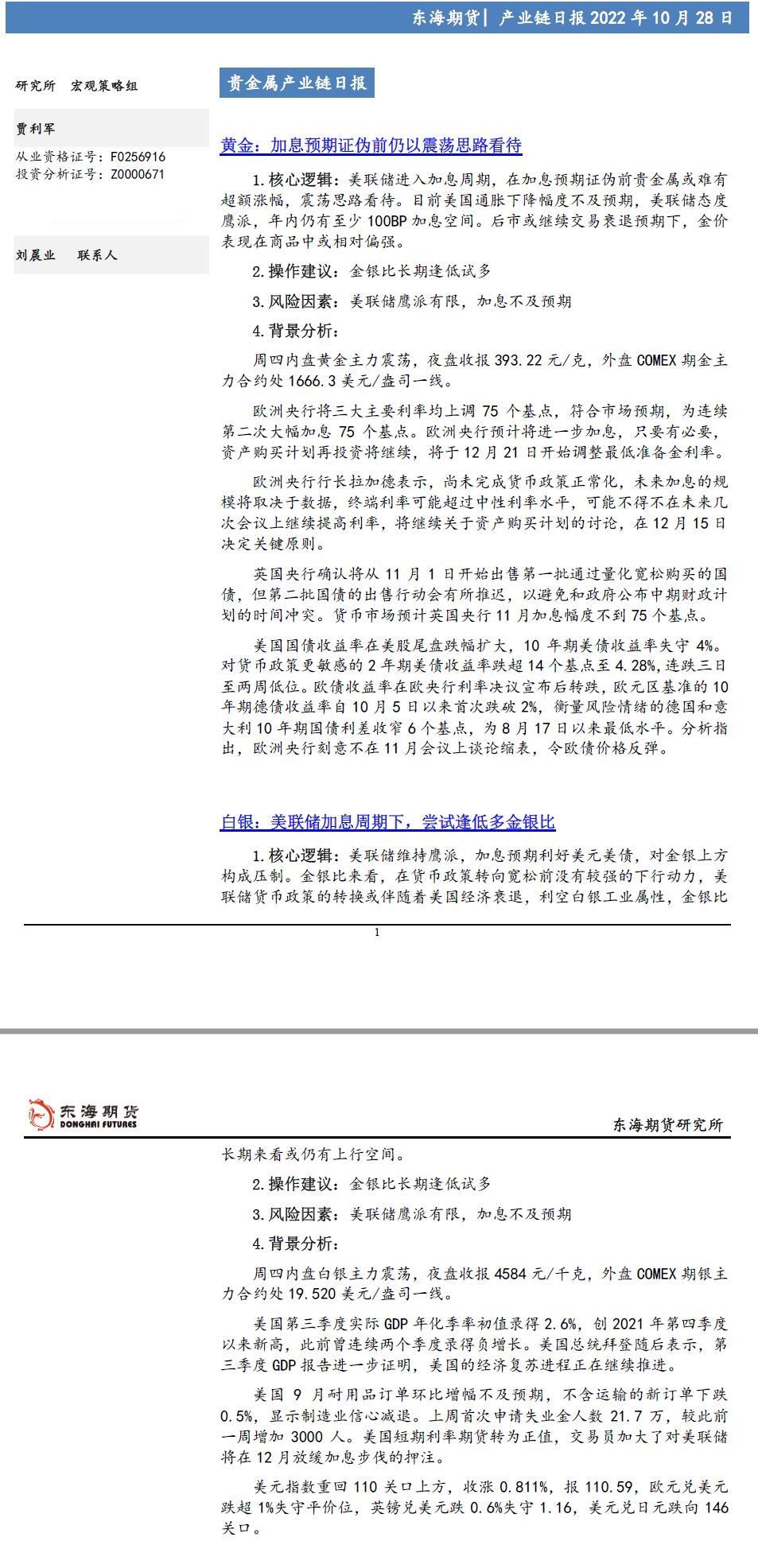 黄金核心逻辑:美联储进入加息周期,在加息预期证伪前贵金属或难有超额涨幅,震荡思路看待。目前美国通胀下降幅度不及预期美联储态度鹰派,年内仍有至少100BP加息空间。后市或继续交易衰退预期下,金价表现在商品中或相对偏强。