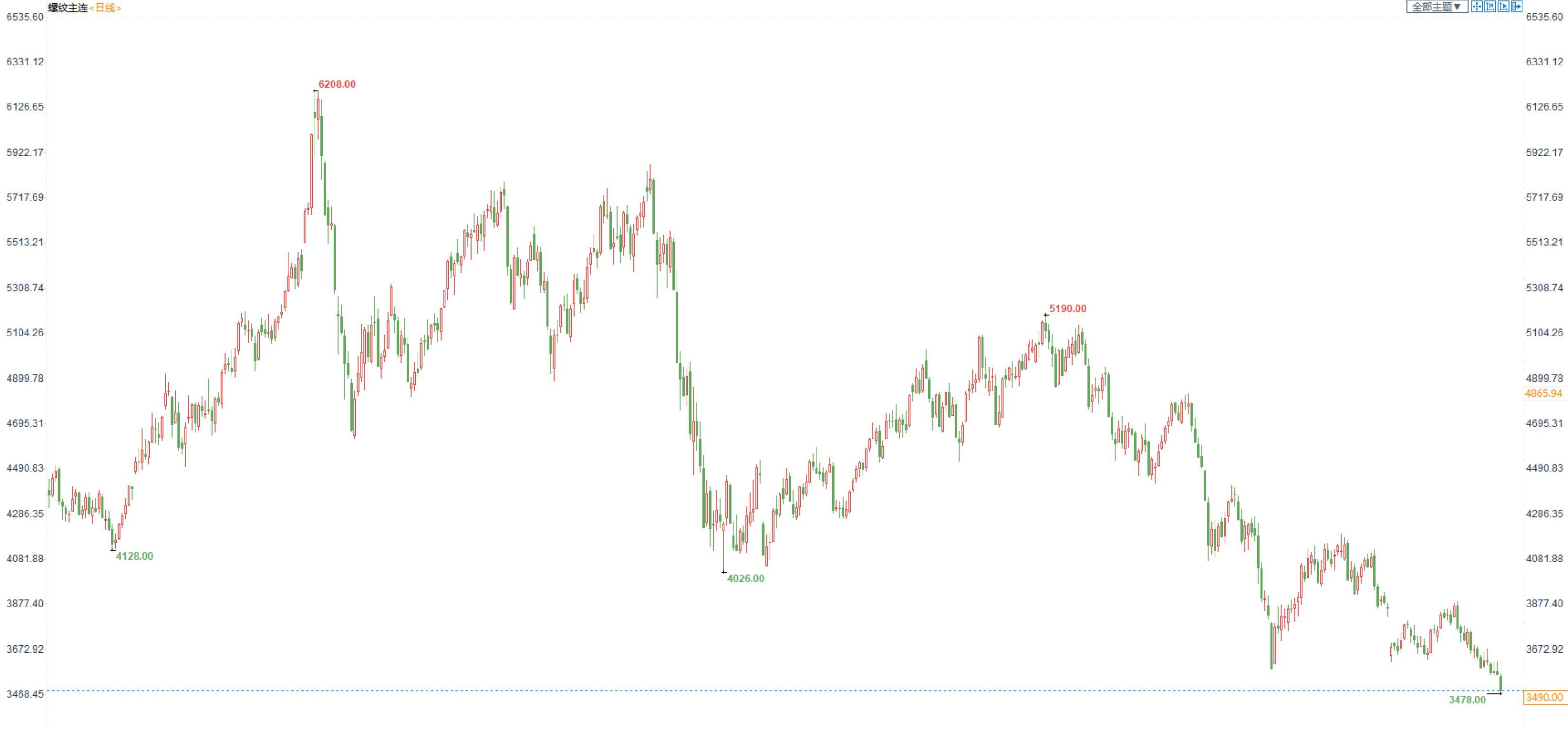 价格:今日,黑色板块整体下行。受原料端大幅下跌影响,螺纹钢跌幅迅速扩大,2301合约日内连续下行,创新低3478,收盘于3490元/吨,收跌2.81%。上海中天现货价为3760元/吨,大幅下调80元/吨。